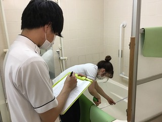 このように看護師の方と同行して、リハビリだけでなく看護師の視点を取り入れ、患者様にとってより良い環境を整え退院できるように支援しています。